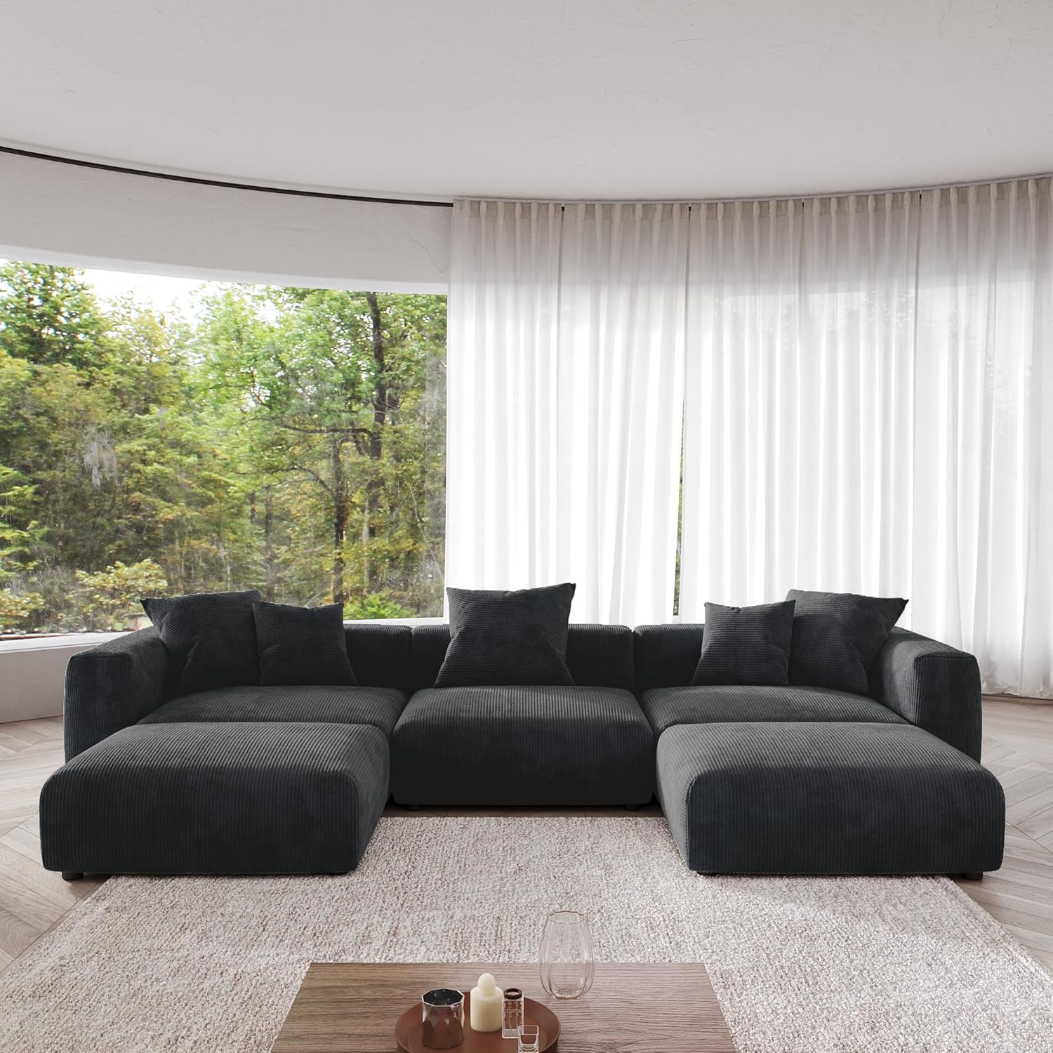 Oversized Modular Design – Extra-large seating and ottomans allow for flexible configurations and generous lounging space.