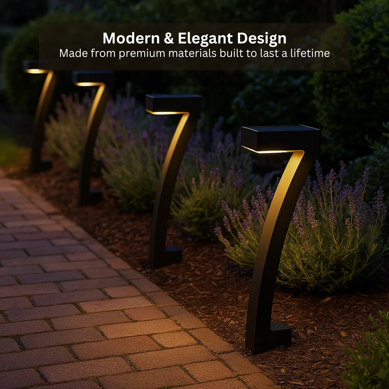 Each Luma Arc installs in seconds with an integrated ground stake. No tools, no wiring, no maintenance. Just press into soil, switch on once, and let it glow every evening. Whether framing a modern home, outlining a stone walkway, or dotting a garden with structure and softness, its presence is understated yet unforgettable.