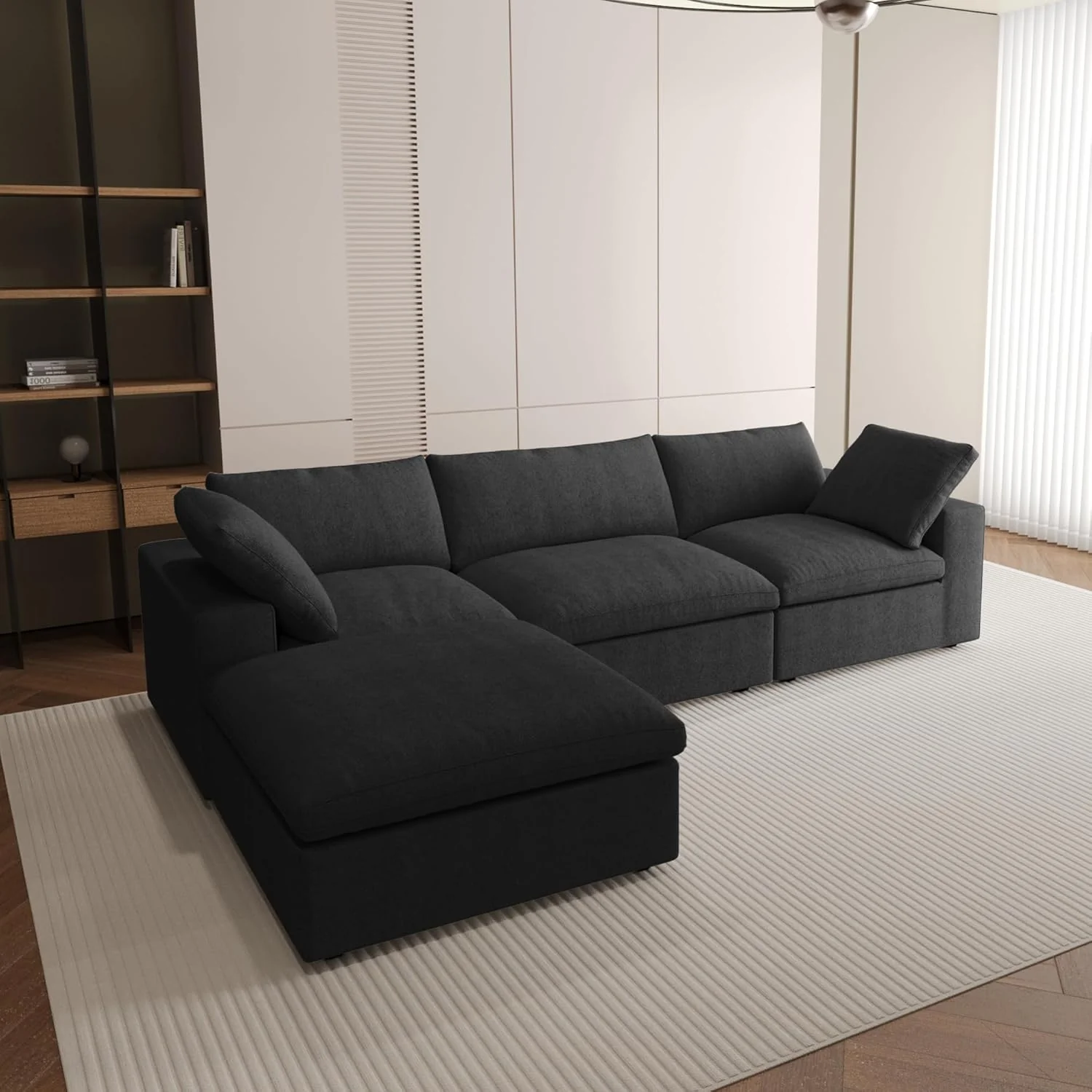 Nuvé® Solace Modular Bouclé Cloud Sofa - Obsidian Black - 3-Seater Sectional Sofa with Ottoman